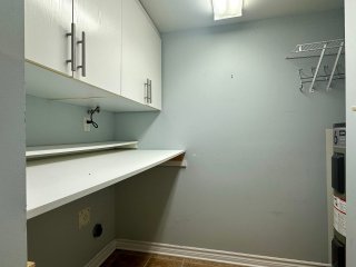 backsplash, and a dishwasher. A separate laundry room with