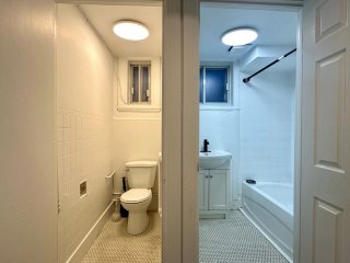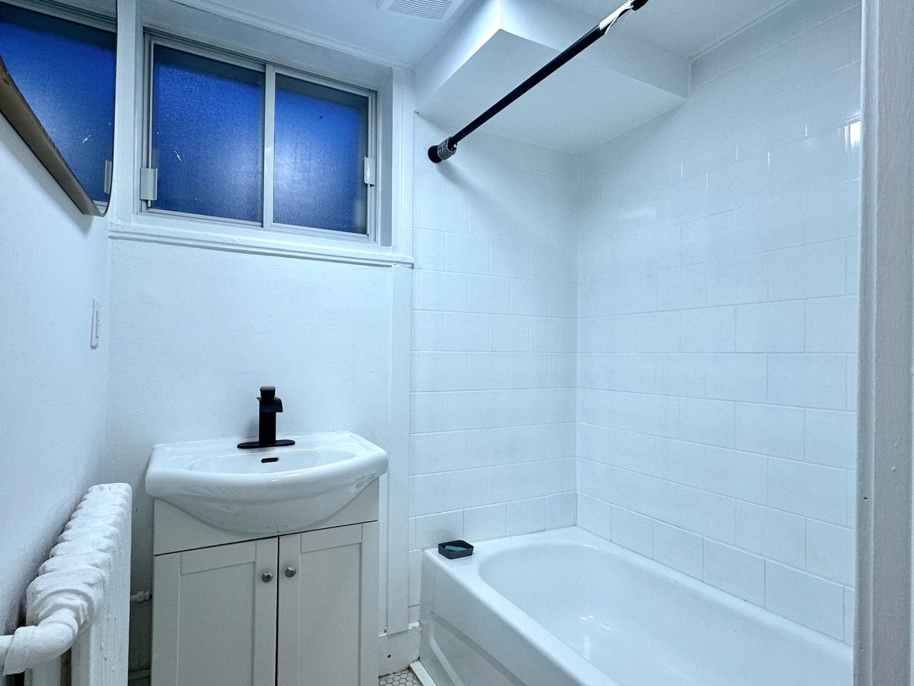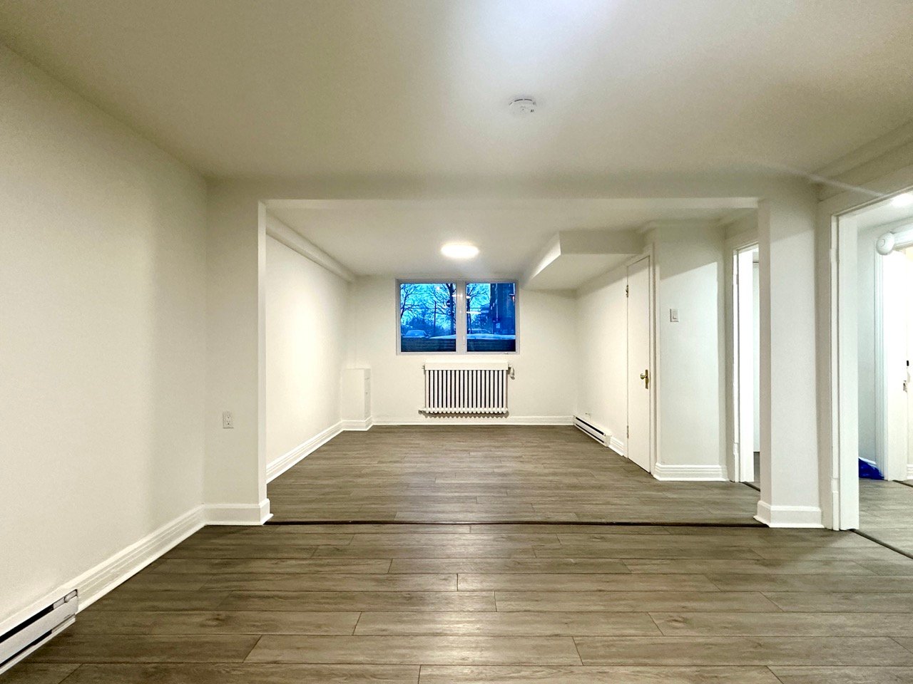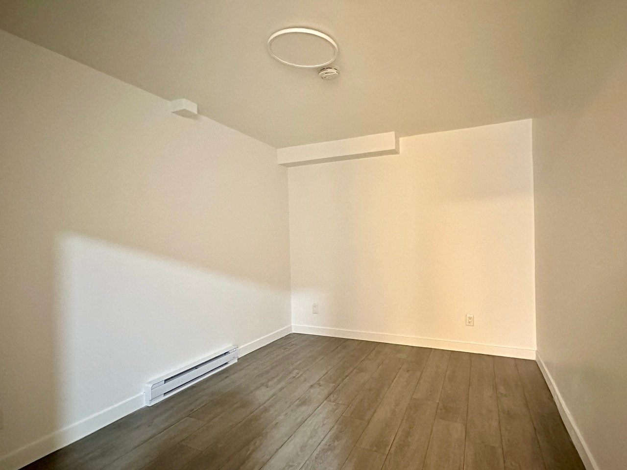 Spacious apartment of over 1,500 sq. ft. in Verdun, featuring a huge double living room in an open-concept layout combined with a modern Shaker-style kitchen with appliances included. The unit, repainted in white with beautiful new floors, is bright thanks to windows and recessed lighting. Three large closed bedrooms, a full bathroom with marble-look tub/shower, and an additional powder room. Independent laundry room. High-speed internet available for $40/month.