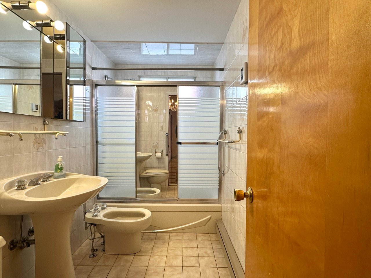 avec bain-douche vitré et un aménagement fonctionnel.
