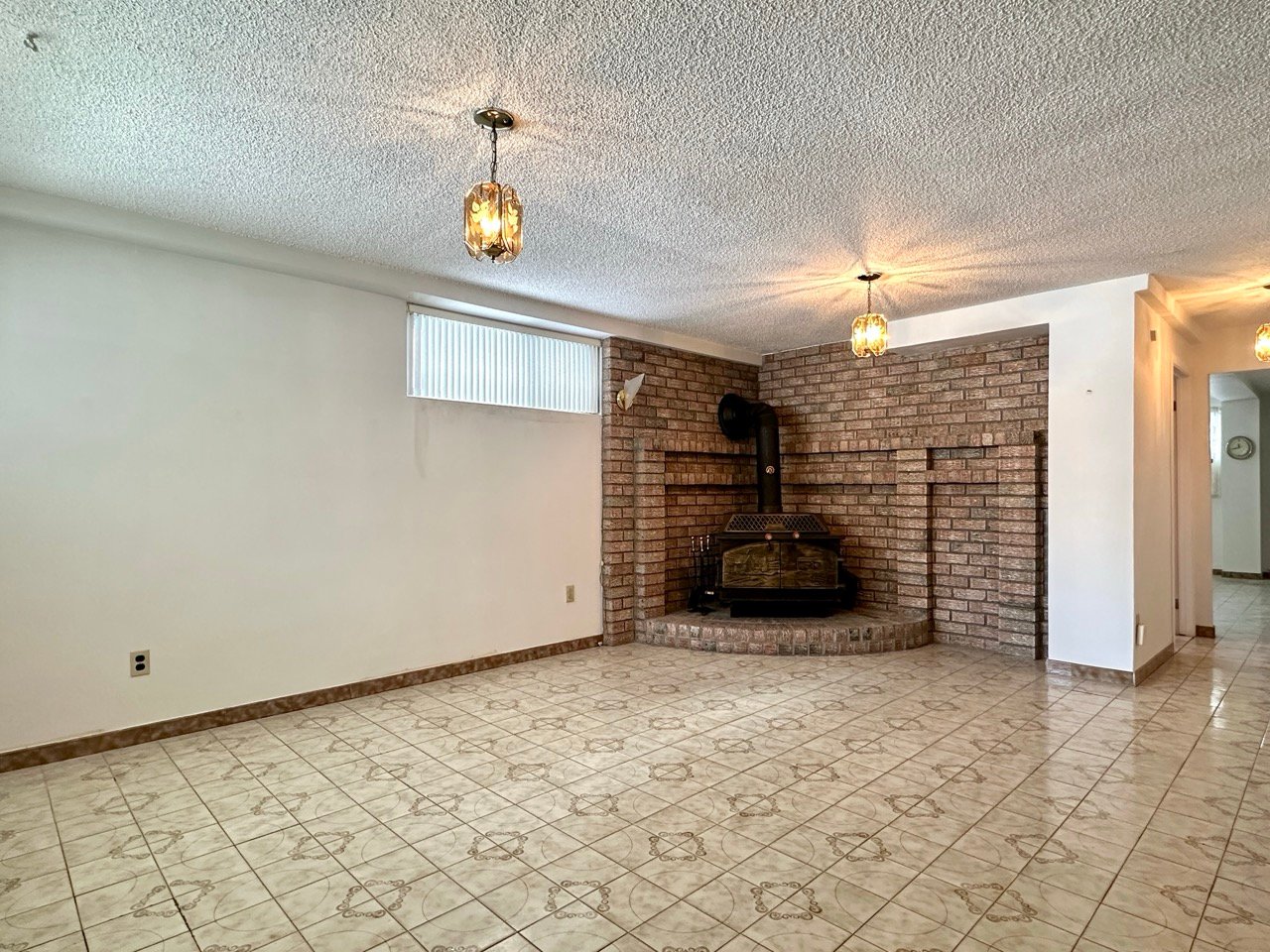 Le sous-sol comprend une grande salle familiale avec foyer