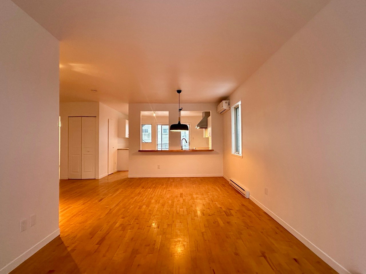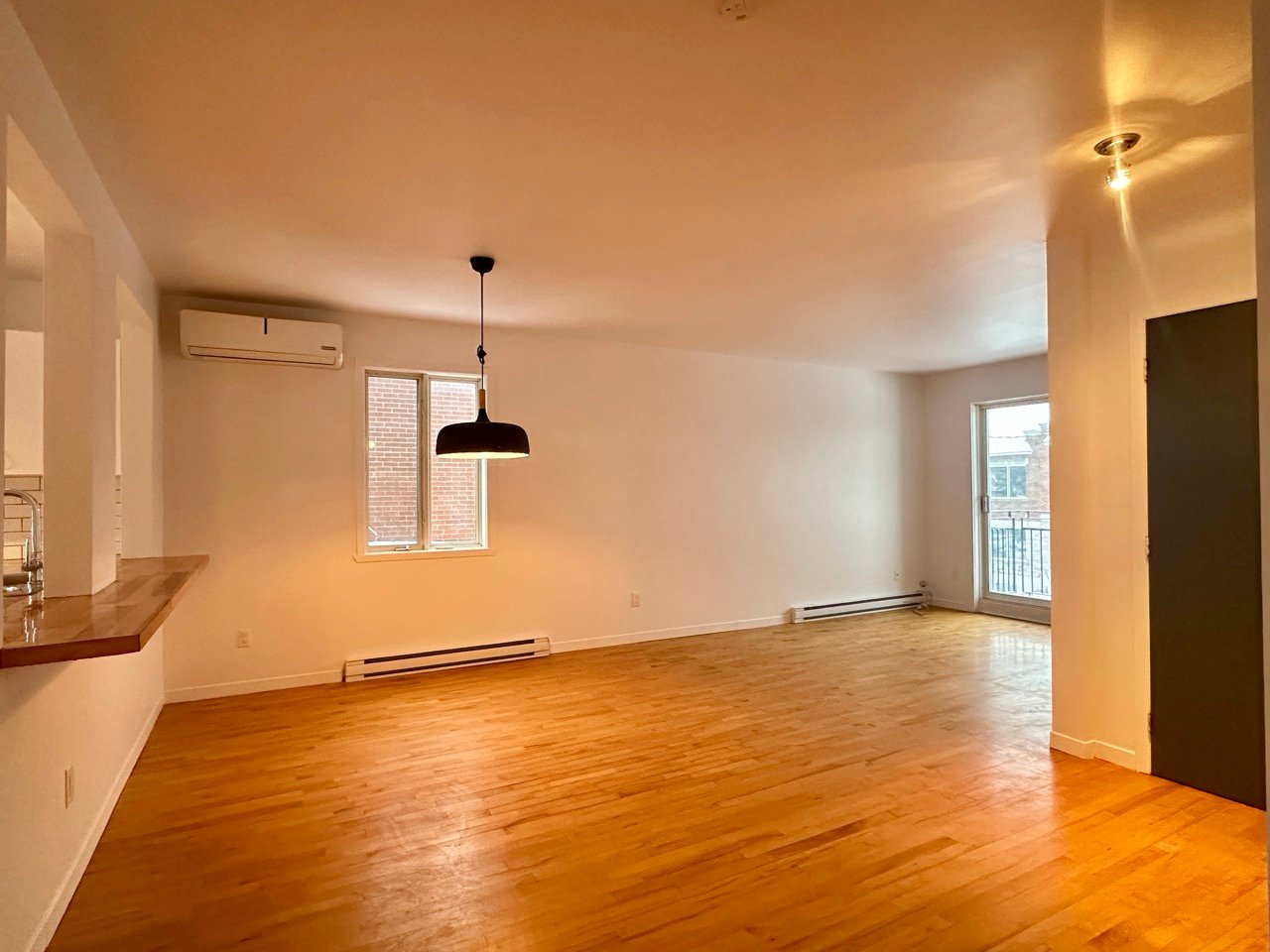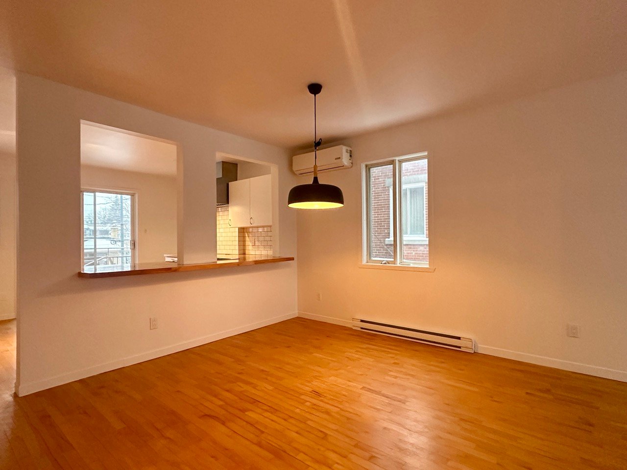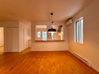Situé dans le secteur recherché de Rosemont, ce logement 4 ½ entièrement rénové est offert en location semi-meublée. D'une superficie d'environ 900 pi², il est situé au 2 étage d'un triplex et propose un espace de vie à aire ouverte regroupant salon, salle à manger et cuisine, baigné de lumière naturelle. La cuisine rénovée offre beaucoup de rangement et inclut les électroménagers. Deux chambres de bonnes dimensions, salle de bains moderne avec bain profond, laveuse et sécheuse incluses, climatisation murale, deux balcons et planchers de bois franc complètent ce logement clé en main.