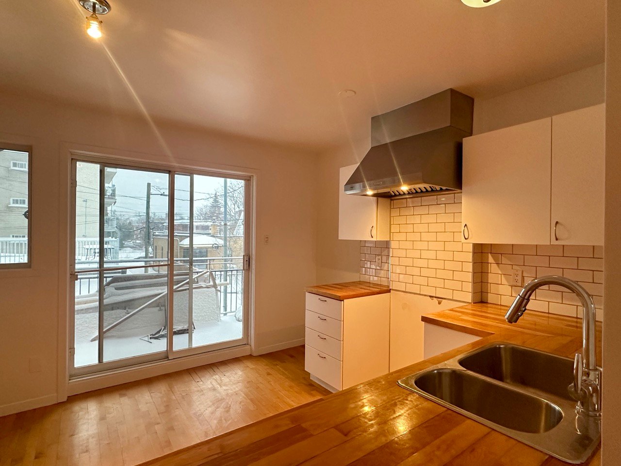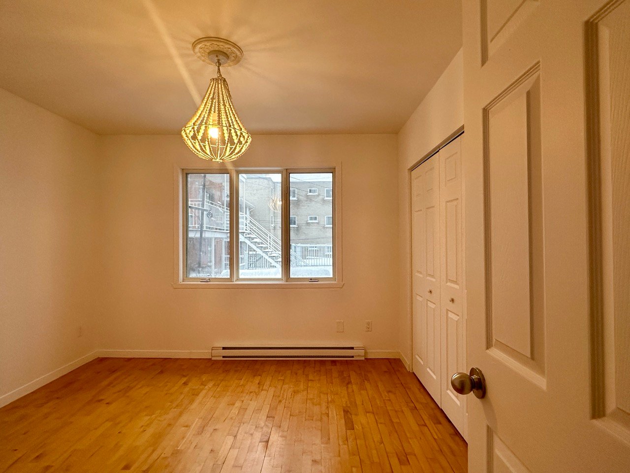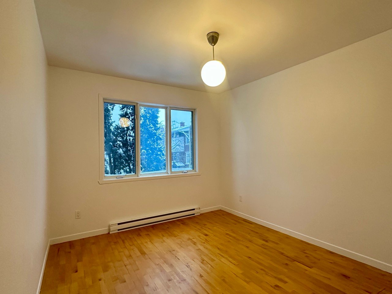 Situé dans le secteur recherché de Rosemont, ce logement 4 ½ entièrement rénové est offert en location semi-meublée. D'une superficie d'environ 900 pi², il est situé au 2 étage d'un triplex et propose un espace de vie à aire ouverte regroupant salon, salle à manger et cuisine, baigné de lumière naturelle. La cuisine rénovée offre beaucoup de rangement et inclut les électroménagers. Deux chambres de bonnes dimensions, salle de bains moderne avec bain profond, laveuse et sécheuse incluses, climatisation murale, deux balcons et planchers de bois franc complètent ce logement clé en main.